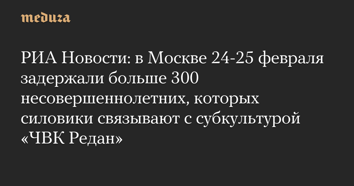 РИА Новости: в Москве 24-25 февраля задержали больше 300 несовершеннолетних, которых силовики связывают с субкультурой «ЧВК Редан»