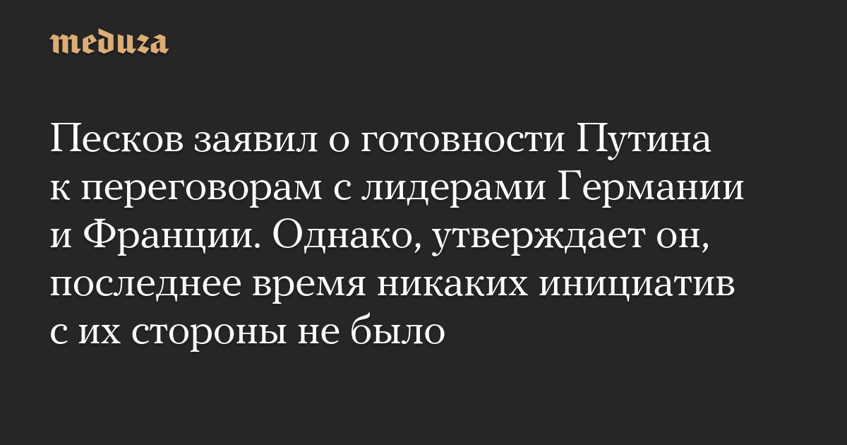 Песков заявил о готовности Путина к переговорам с лидерами Германии и Франции. Однако, утверждает он, последнее время никаких инициатив с их стороны не было