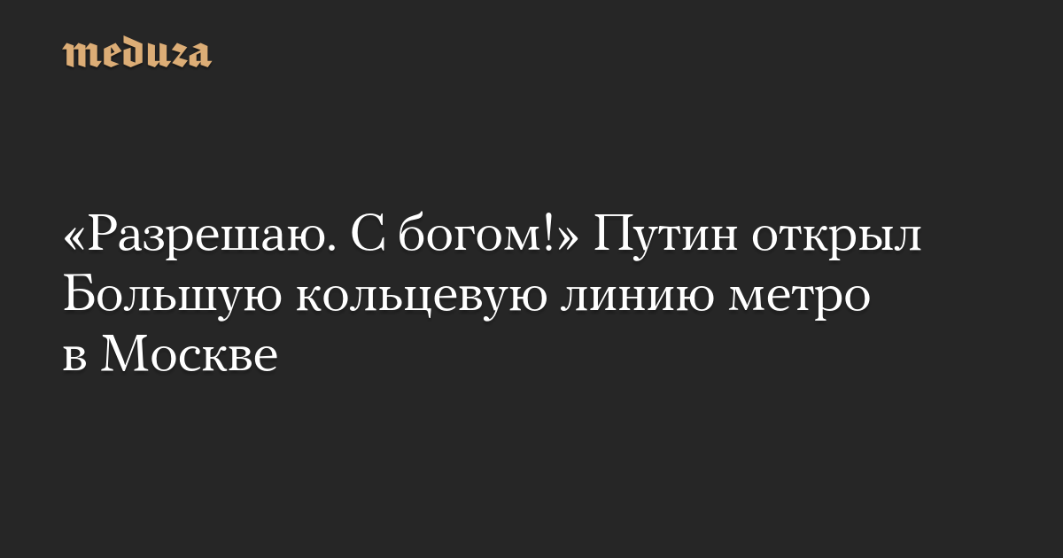 «Разрешаю. С богом!» Путин открыл Большую кольцевую линию метро в Москве
