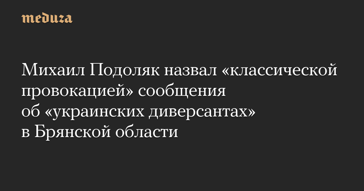 Советник главы офиса президента Украины Михаил Подоляк назвал «классической провокацией» сообщения об «украинской диверсионной группе», проникшей в Брянскую область.