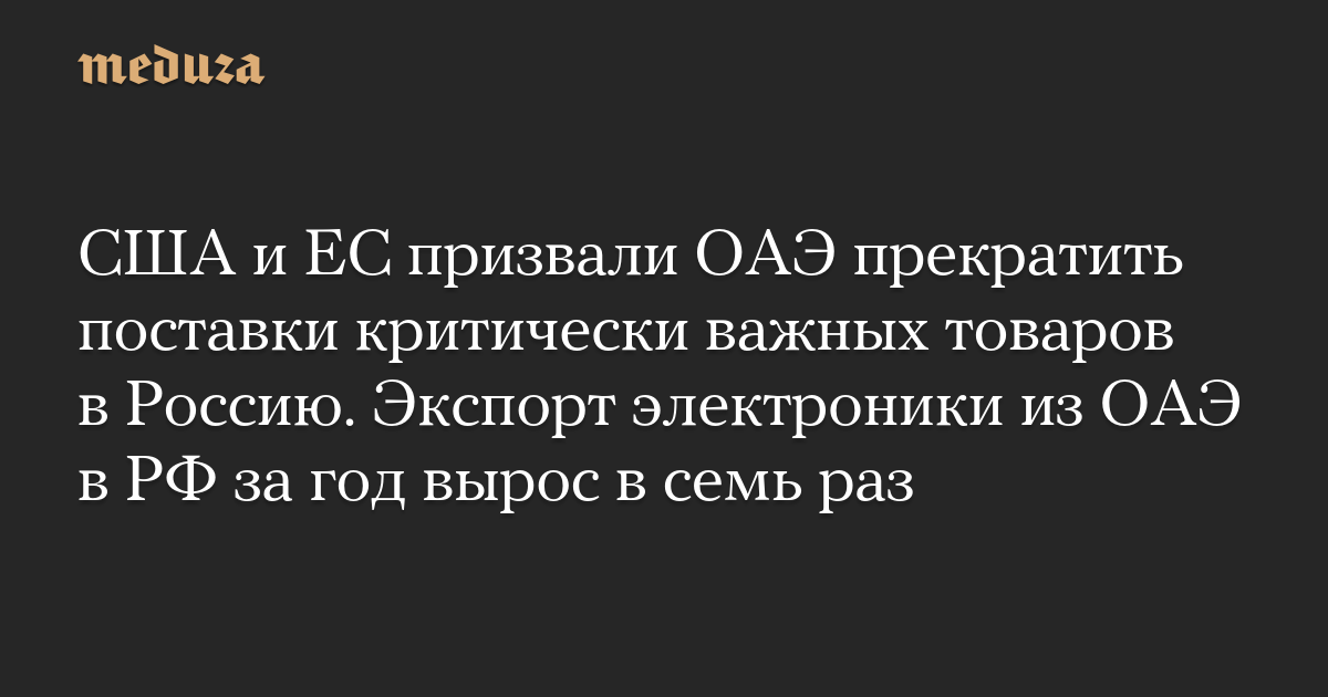 США и ЕС призвали ОАЭ прекратить поставки критически важных товаров в Россию. Экспорт электроники из ОАЭ в РФ за год вырос в семь раз