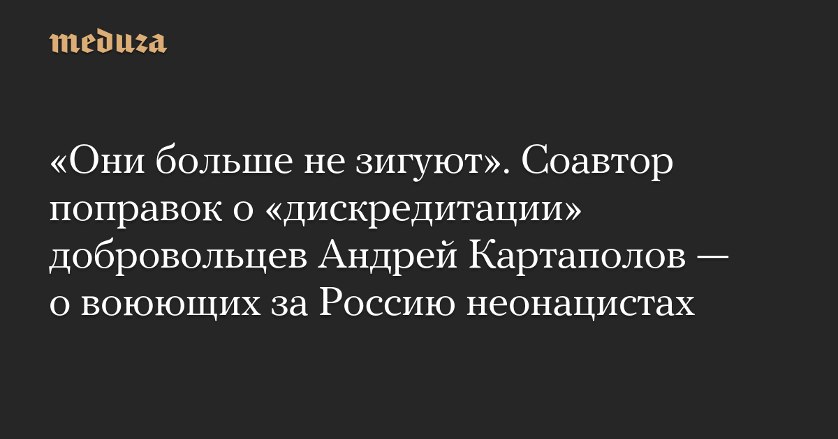 «Они больше не зигуют». Соавтор поправок о «дискредитации» добровольцев Андрей Картаполов — о воюющих за Россию неонацистах
