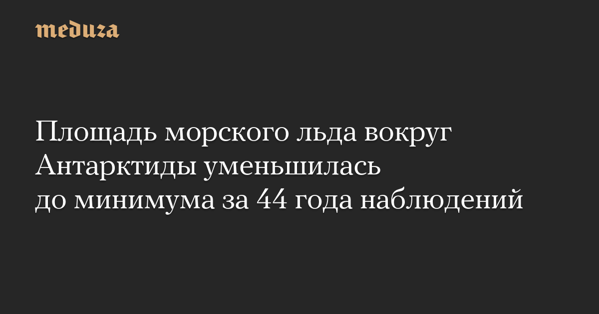 Площадь морского льда вокруг Антарктиды уменьшилась до минимума за 44 года наблюдений