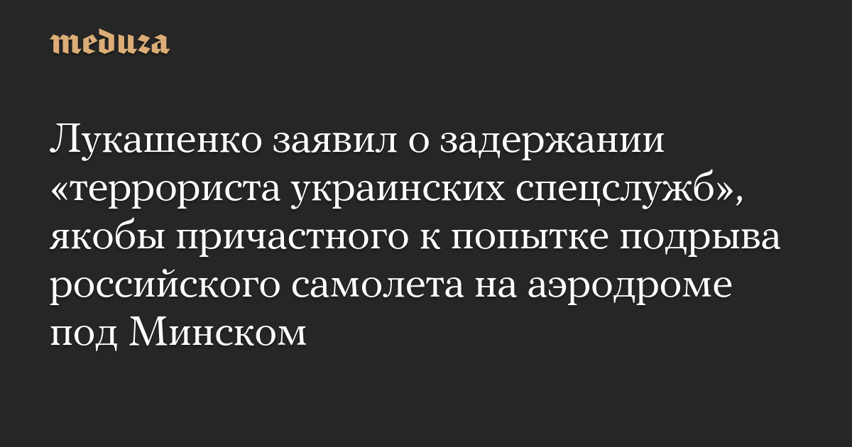 Лукашенко заявил о задержании «террориста украинских спецслужб», якобы причастного к попытке подрыва российского самолета на аэродроме под Минском