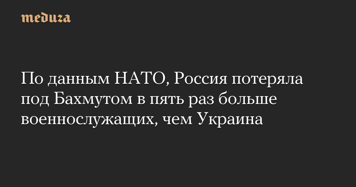 По данным НАТО, Россия потеряла под Бахмутом в пять раз больше военнослужащих, чем Украина