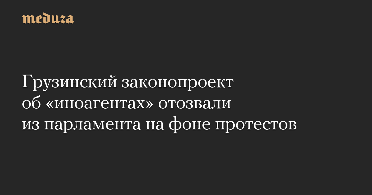 Правящая партия «Грузинская мечта» и другие партии из парламентского большинства Грузии приняли решение отозвать законопроект «О прозрачности иностранного влияния», вызвавший массовые протесты в обществе.