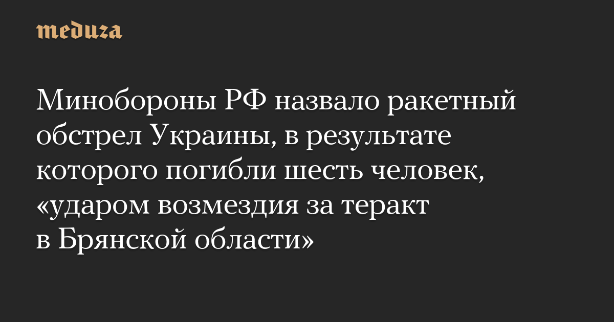 Минобороны РФ назвало ракетный обстрел Украины, в результате которого погибли шесть человек, «ударом возмездия за теракт в Брянской области»