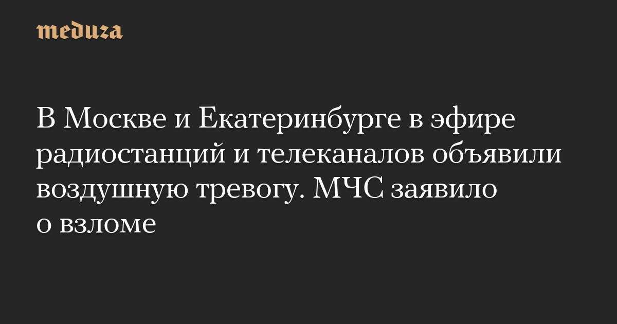 В управлениях МЧС по Свердловской области и по Москве заявили, что объявление о воздушной тревоге прозвучало в эфире «в результате взлома серверов радиостанций и телеканалов».