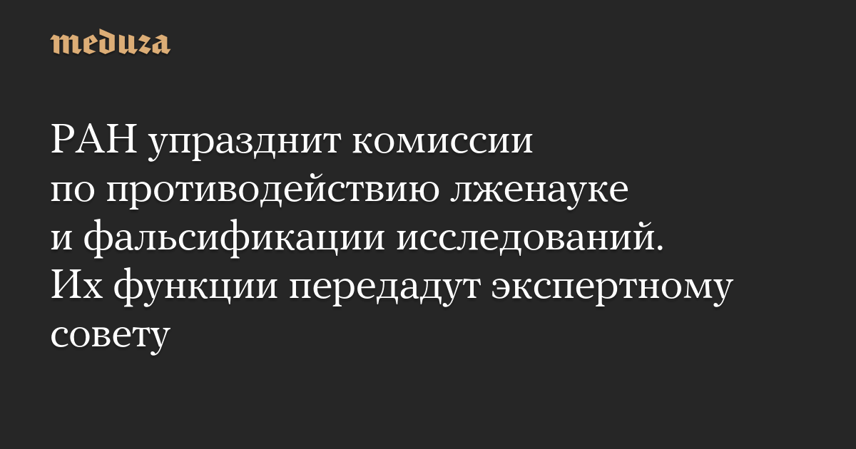 Российская академия наук передаст функции комиссий по противодействию лженауке и фальсификации исследований экспертному совету, сообщают «Ведомости». По данным издания, соответствующее решение руководство академии приняло в декабре 2022 года.