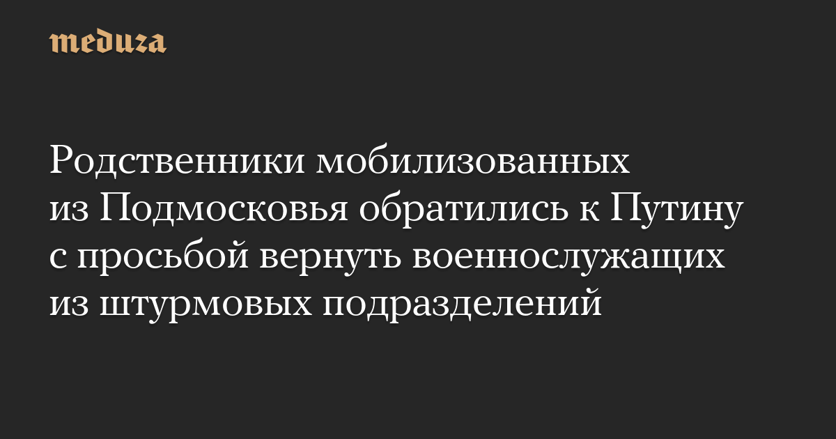 Родственники мобилизованных из Подмосковья обратились к Путину с просьбой вернуть военнослужащих из штурмовых подразделений