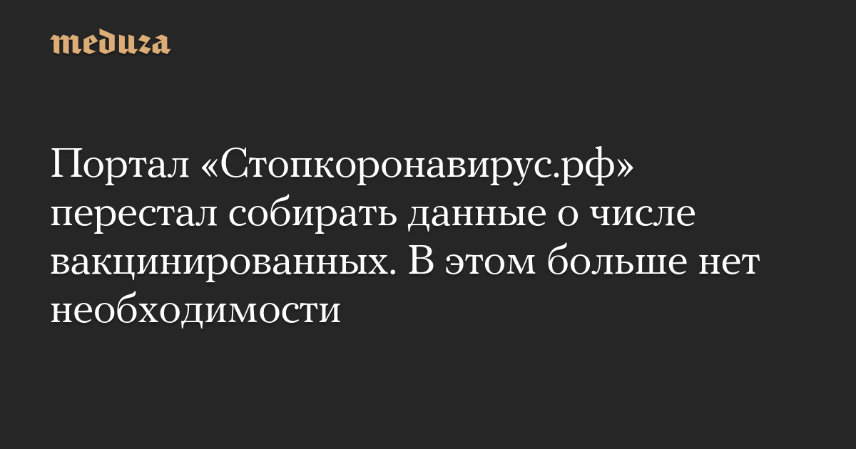 Портал «Стопкоронавирус.рф» перестал собирать данные о числе вакцинированных. В этом больше нет необходимости