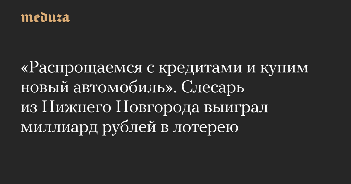 «Распрощаемся с кредитами и купим новый автомобиль». Слесарь из Нижнего Новгорода выиграл миллиард рублей в лотерею
