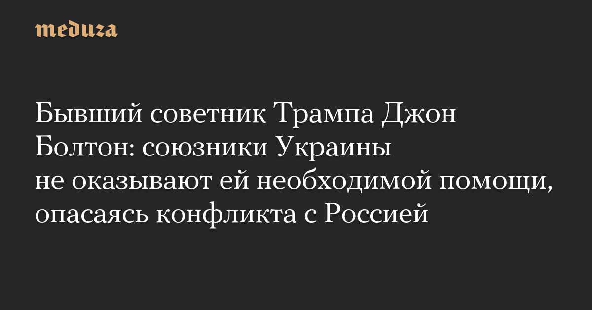 Бывший советник Трампа Джон Болтон: союзники Украины не оказывают ей необходимой помощи, опасаясь конфликта с Россией
