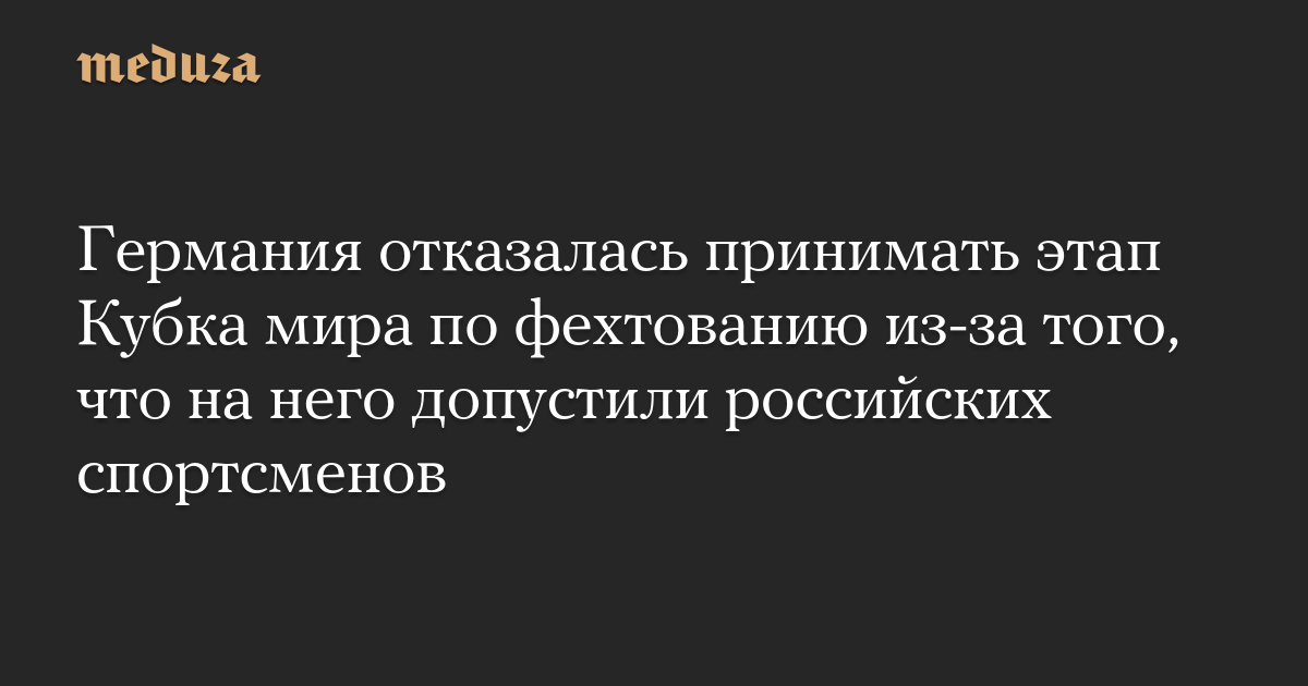 Германия отказалась принимать этап Кубка мира по фехтованию из-за допуска к соревнованиям спортсменов из России и Беларуси. Об этом сообщила Федерация фехтования Германии.