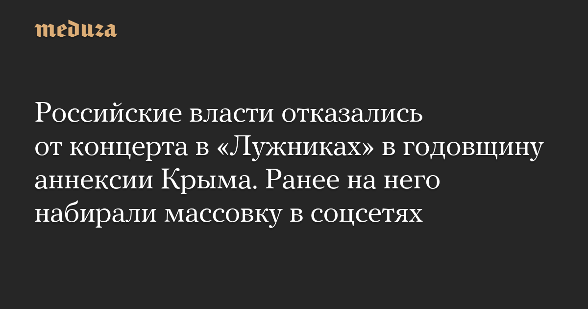 Российские власти отказались от концерта в «Лужниках» в годовщину аннексии Крыма. Ранее на него набирали массовку в соцсетях