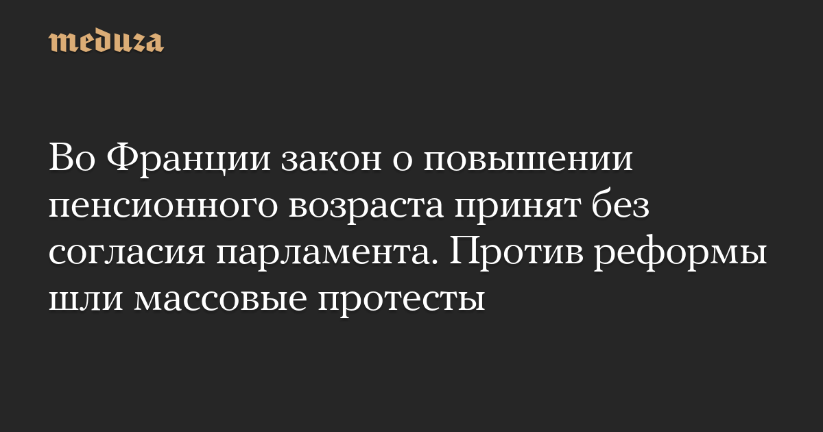 Ранее 16 марта Сенат Франции одобрил спорный закон о пенсионной реформе, но голосование в Национальной ассамблее — нижней палате парламента, намеченное на этот же день, не состоялось. СМИ предполагали, что там закон могут не поддержать.