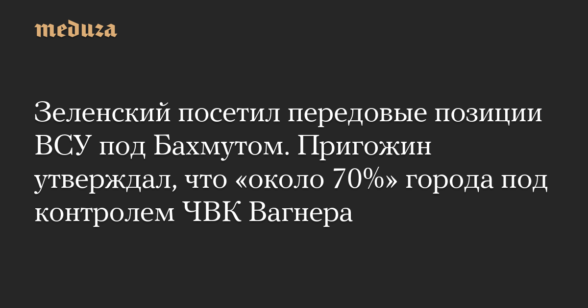 Зеленский посетил передовые позиции ВСУ под Бахмутом. Пригожин утверждал, что «около 70%» города под контролем ЧВК Вагнера