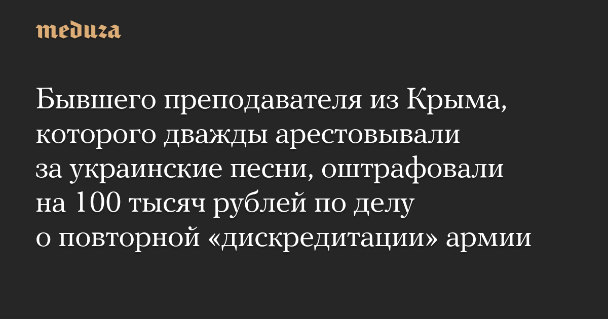 Бывшего преподавателя из Крыма, которого дважды арестовывали за украинские песни, оштрафовали на 100 тысяч рублей по делу о повторной «дискредитации» армии