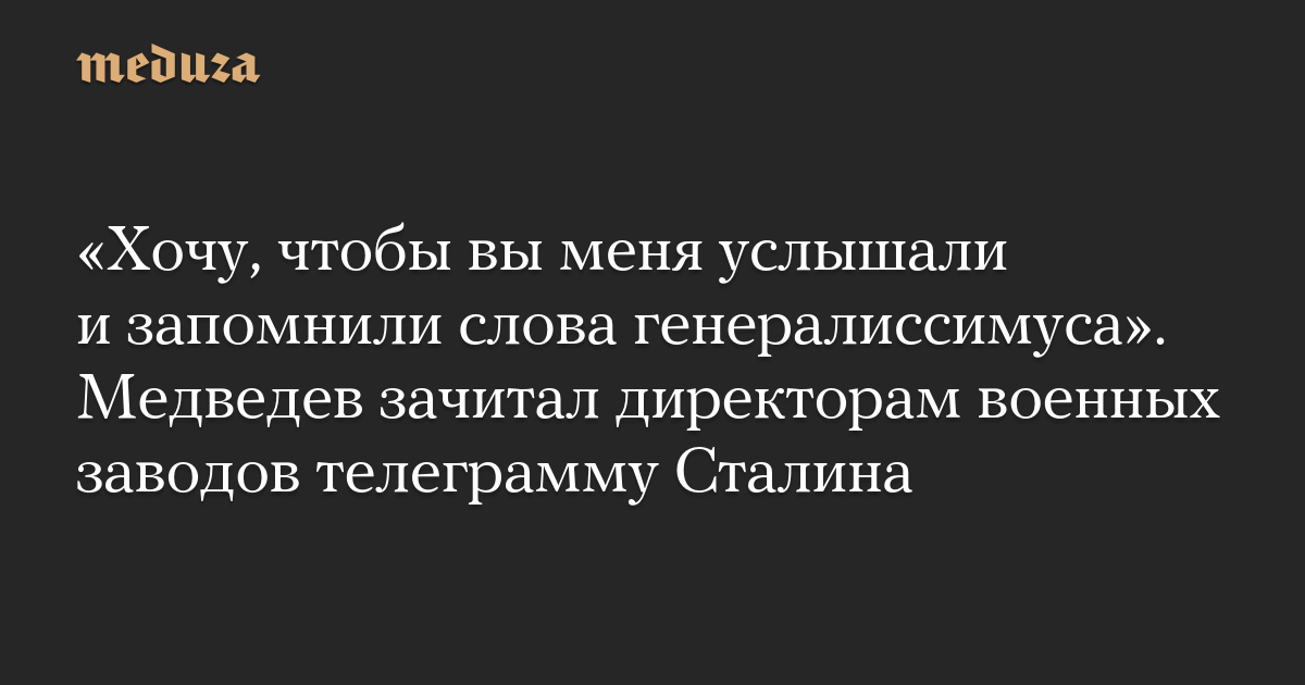 «Хочу, чтобы вы меня услышали и запомнили слова генералиссимуса». Медведев зачитал директорам военных заводов телеграмму Сталина