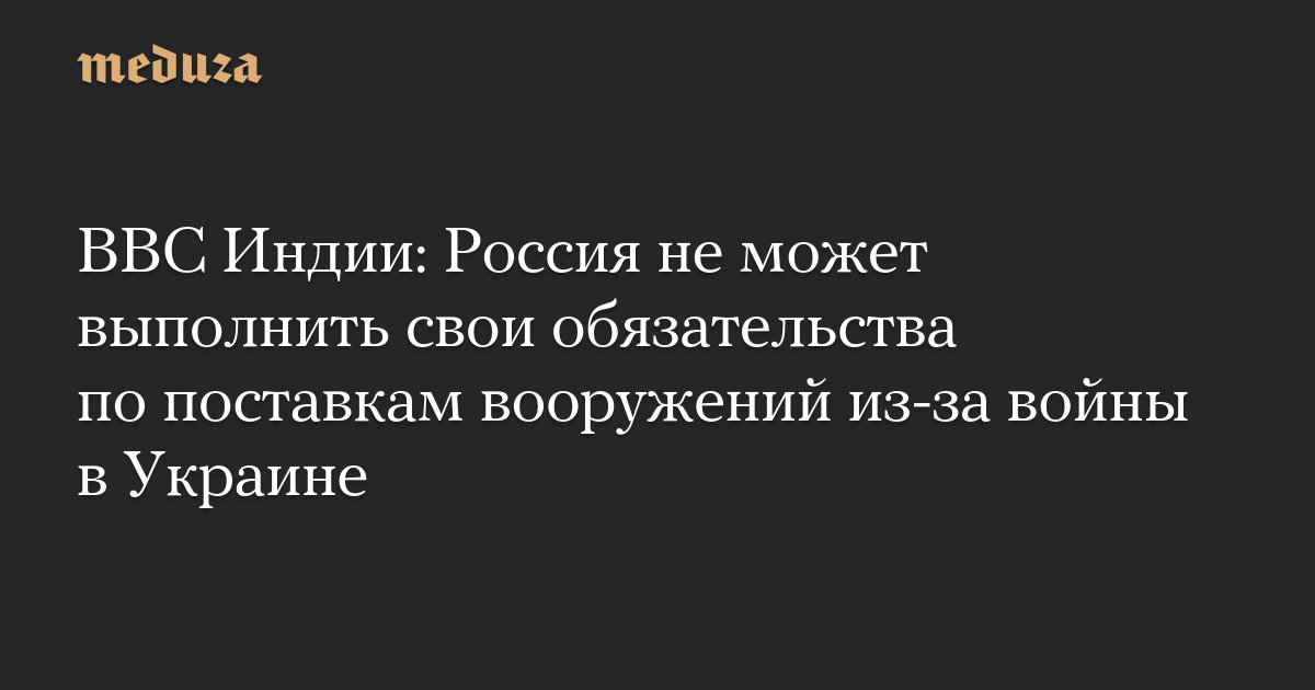 Представитель ВВС Индии заявил парламентскому комитету, что Россия не сможет выполнить свои обязательства по поставкам вооружений из-за войны в Украине, передает CNN.