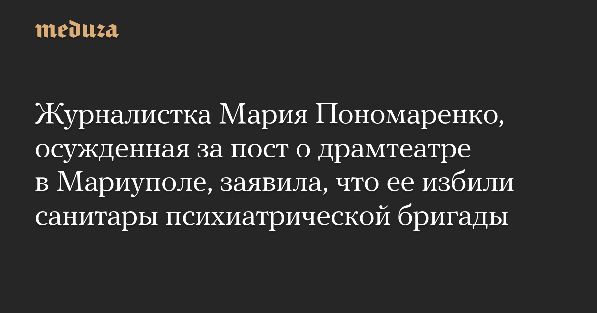 Журналистка Мария Пономаренко, осужденная за пост о драмтеатре в Мариуполе, заявила, что ее избили санитары психиатрической бригады
