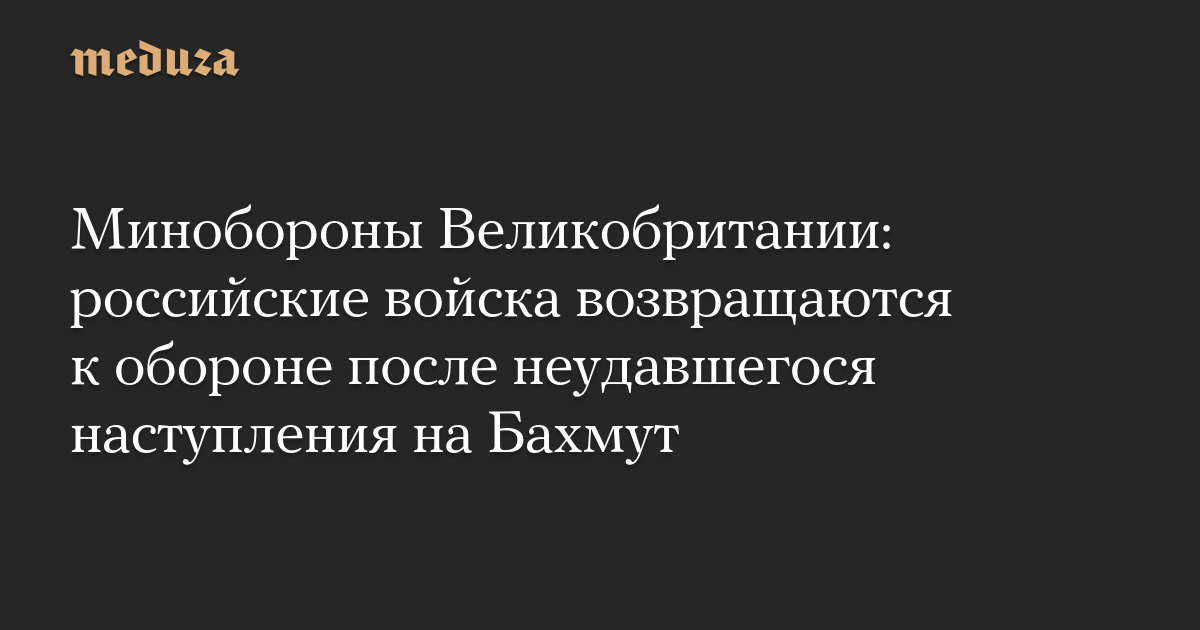 Минобороны Великобритании: российские войска возвращаются к обороне после неудавшегося наступления на Бахмут