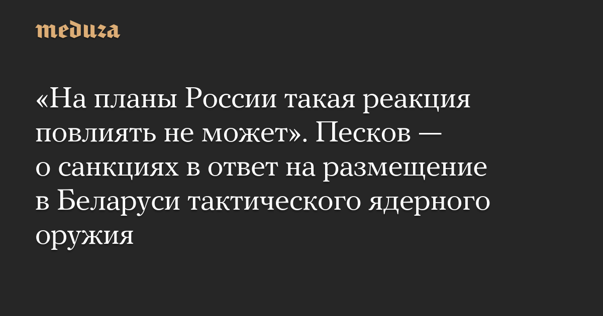 «На планы России такая реакция повлиять не может». Песков — о санкциях в ответ на размещение в Беларуси тактического ядерного оружия
