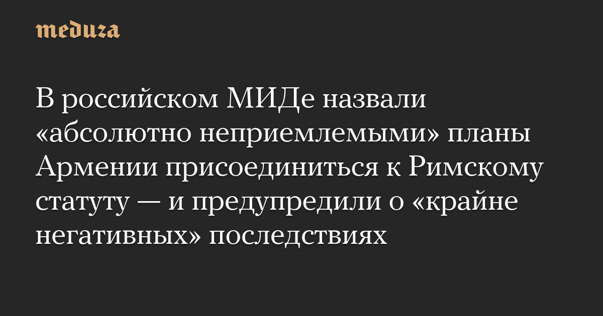 В российском МИДе назвали «абсолютно неприемлемыми» планы Армении присоединиться к Римскому статуту — и предупредили о «крайне негативных» последствиях