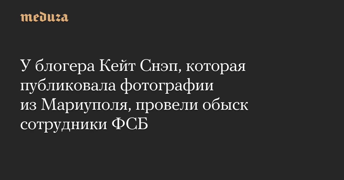 У блогера Кейт Снэп, которая публиковала фотографии из Мариуполя, провели обыск сотрудники ФСБ