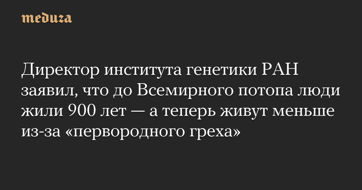 Директор института генетики РАН заявил, что до Всемирного потопа люди жили 900 лет — а теперь живут меньше из-за «первородного греха»
