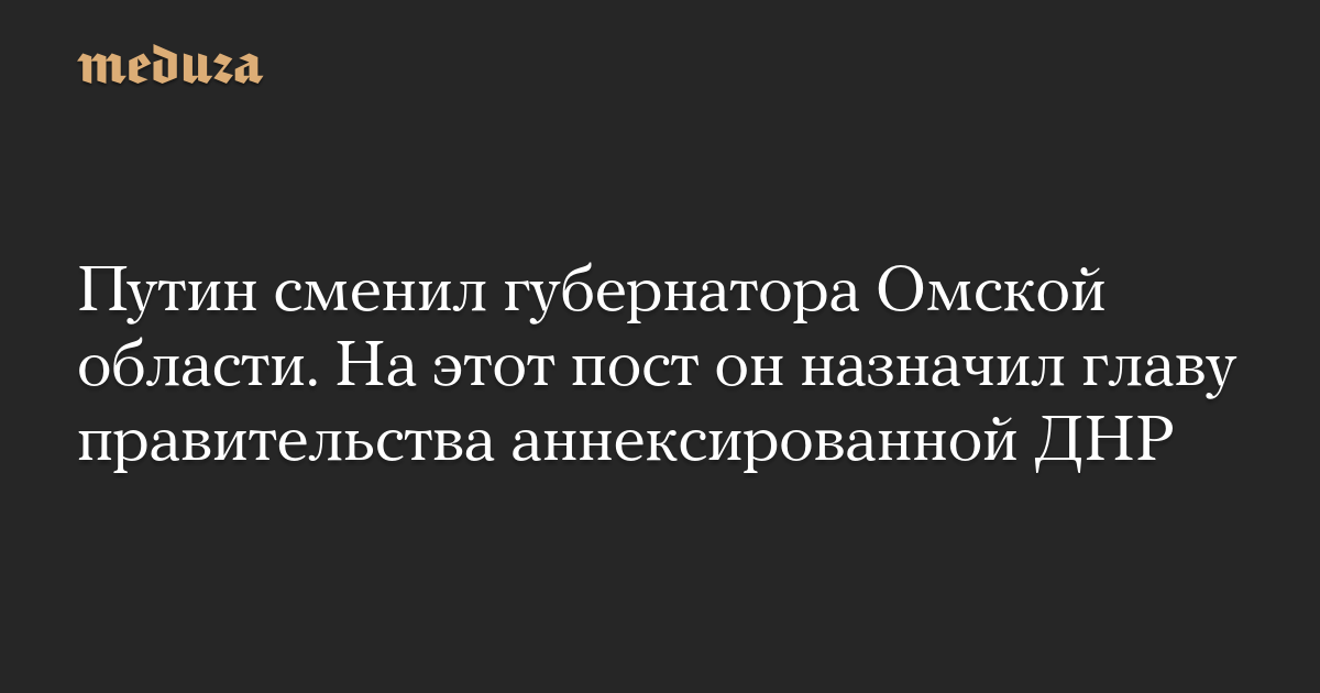 Путин сменил губернатора Омской области. На этот пост он назначил главу правительства аннексированной ДНР