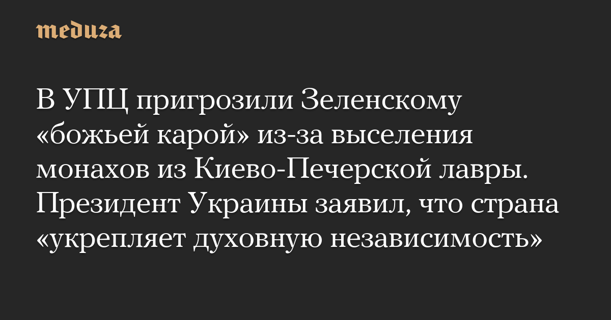 В УПЦ пригрозили Зеленскому «божьей карой» из-за выселения монахов из Киево-Печерской лавры. Президент Украины заявил, что страна «укрепляет духовную независимость»