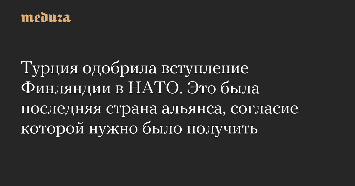 Турция одобрила вступление Финляндии в НАТО. Это была последняя страна альянса, согласие которой нужно было получить