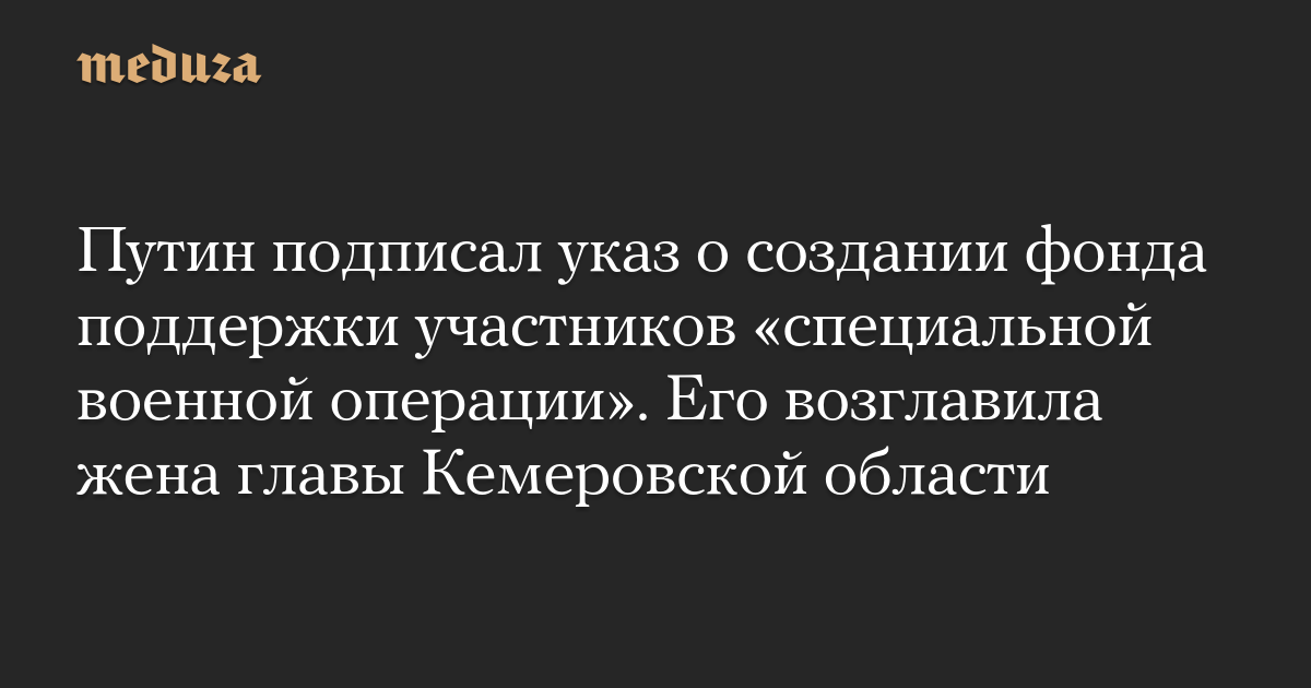 Путин подписал указ о создании фонда поддержки участников «специальной военной операции». Его возглавила жена главы Кемеровской области