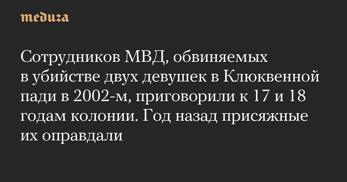 Сотрудников МВД, обвиняемых в убийстве двух девушек в Клюквенной пади в 2002-м, приговорили к 17 и 18 годам колонии. Год назад присяжные их оправдали