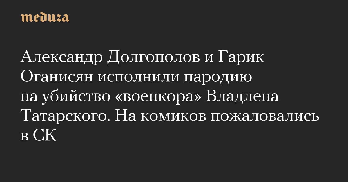 Александр Долгополов и Гарик Оганисян исполнили пародию на убийство «военкора» Владлена Татарского. На комиков пожаловались в СК