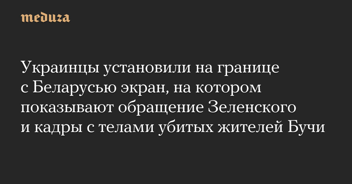 Украинцы установили на границе с Беларусью экран, на котором показывают обращение Зеленского и кадры с телами убитых жителей Бучи