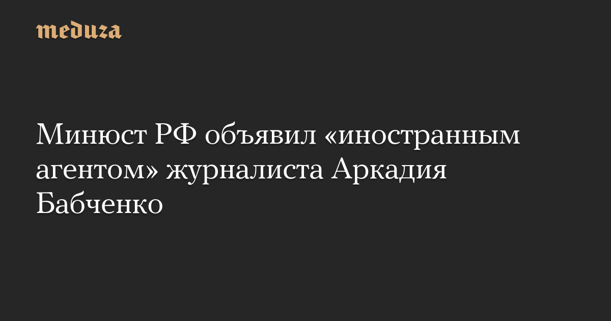 Минюст РФ объявил «иностранным агентом» журналиста Аркадия Бабченко