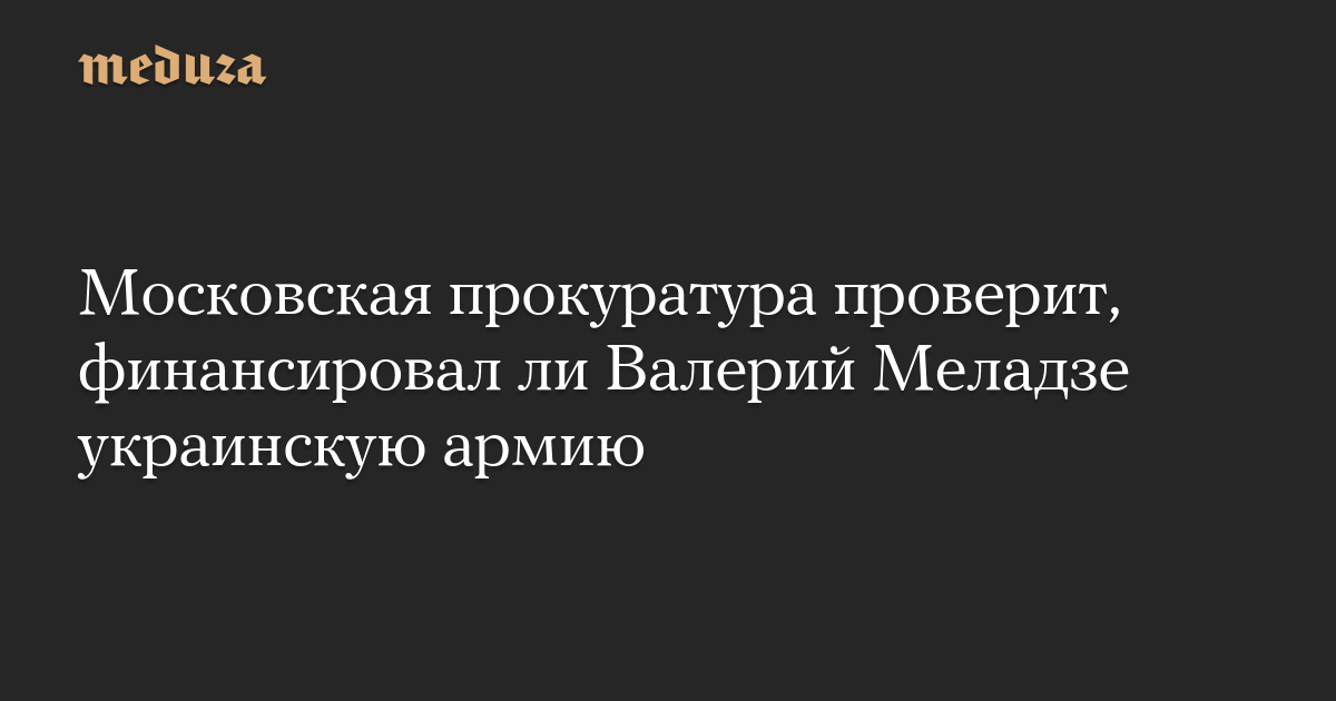 Генпрокуратура РФ поручила прокуратуре Москвы провести проверку певца Валерия Меладзе на предмет возможного финансирования Вооруженных сил Украины, сообщил ТАСС источник в правоохранительных органах.