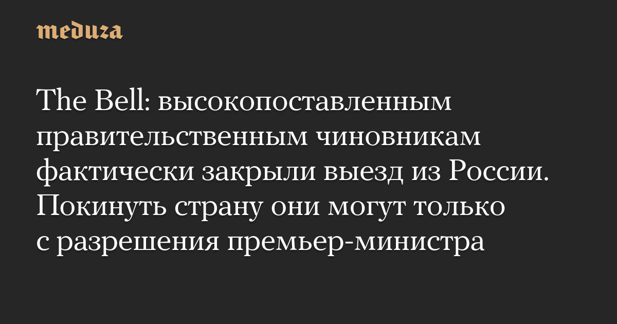 The Bell: высокопоставленным правительственным чиновникам фактически закрыли выезд из России. Покинуть страну они могут только с разрешения премьер-министра
