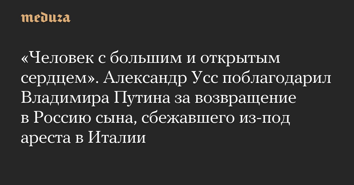 «Человек с большим и открытым сердцем». Александр Усс поблагодарил Владимира Путина за возвращение в Россию сына, сбежавшего из-под ареста в Италии