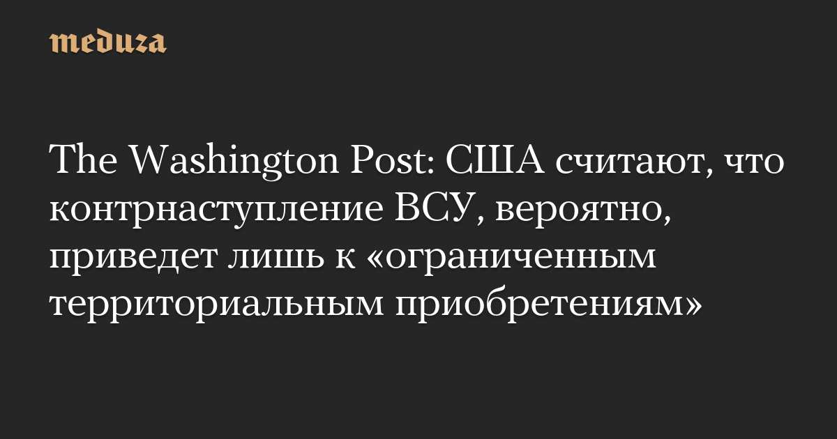 The Washington Post: США считают, что контрнаступление ВСУ, вероятно, приведет лишь к «ограниченным территориальным приобретениям»