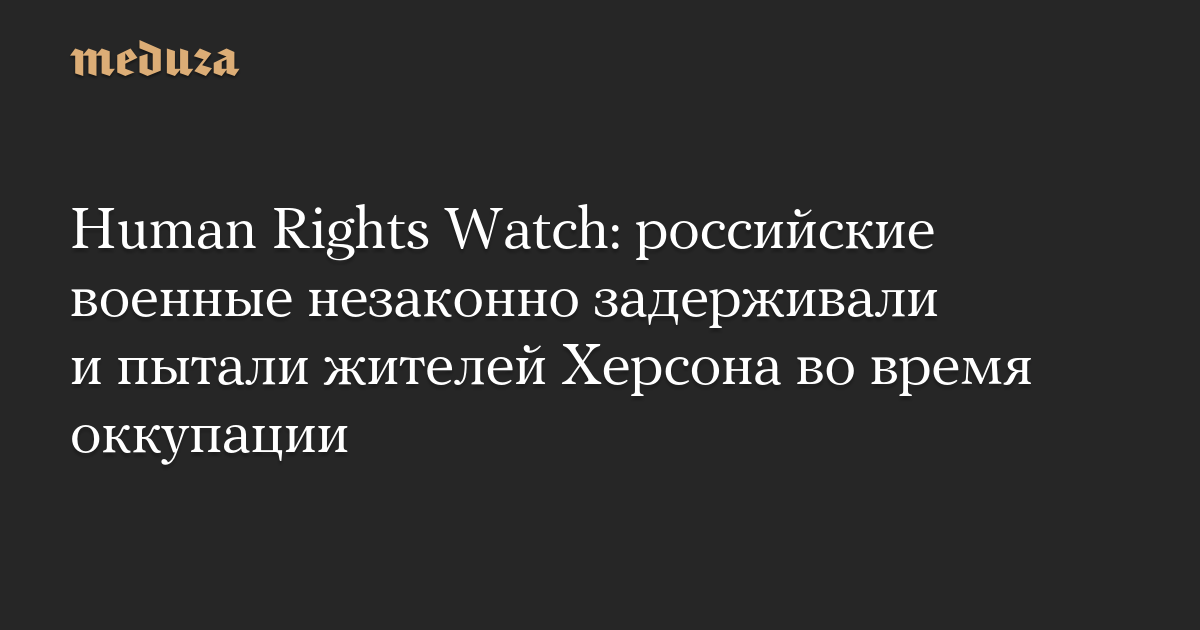 Правозащитная организация Human Rights Watch заявила, что российские военные во время оккупации Херсона и его окрестностей в марте-ноябре 2022 года незаконно задерживали и пытали местных жителей. Об этом говорится в докладе организации, основанном на беседах с 34 местными жителями, в том числе бывшими задержанными.