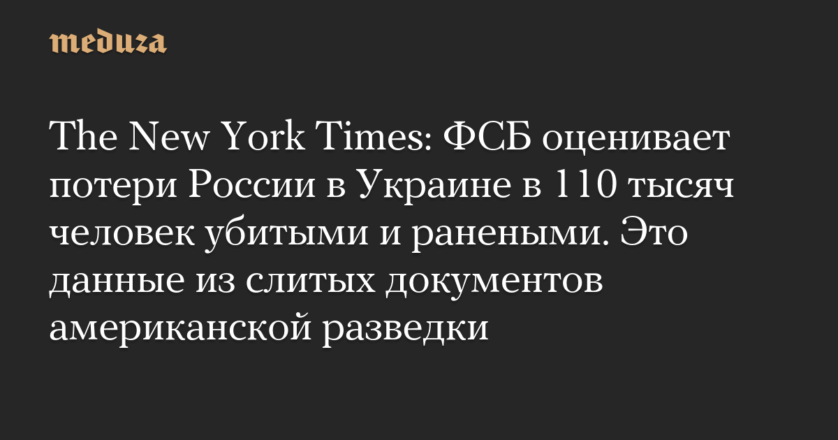 The New York Times: ФСБ оценивает потери России в Украине в 110 тысяч человек убитыми и ранеными. Это данные из слитых документов американской разведки