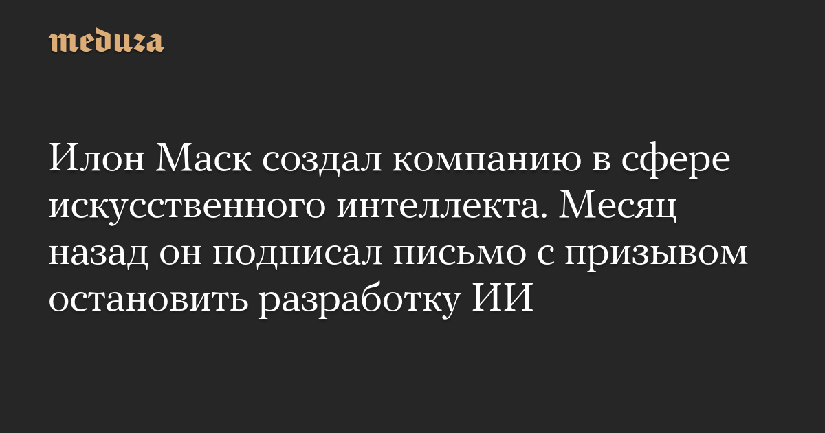 Илон Маск создал компанию в сфере искусственного интеллекта. Месяц назад он подписал письмо с призывом остановить разработку ИИ