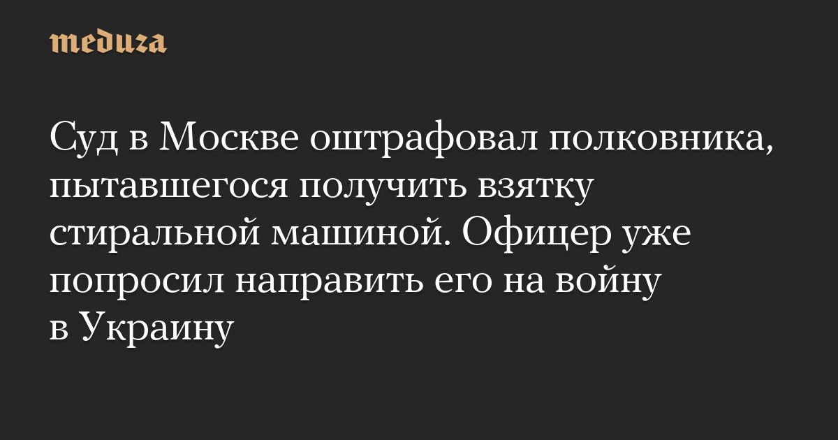 Суд в Москве оштрафовал полковника, пытавшегося получить взятку стиральной машиной. Офицер уже попросил направить его на войну в Украину