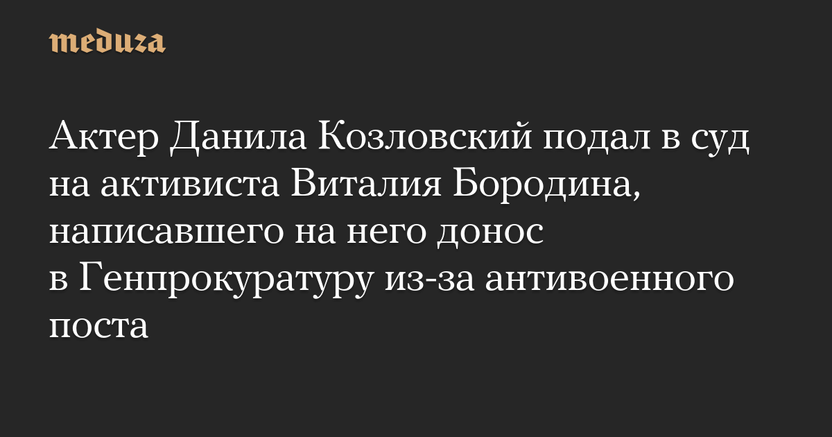 Актер Данила Козловский подал в суд на активиста Виталия Бородина, написавшего на него донос в Генпрокуратуру из-за антивоенного поста