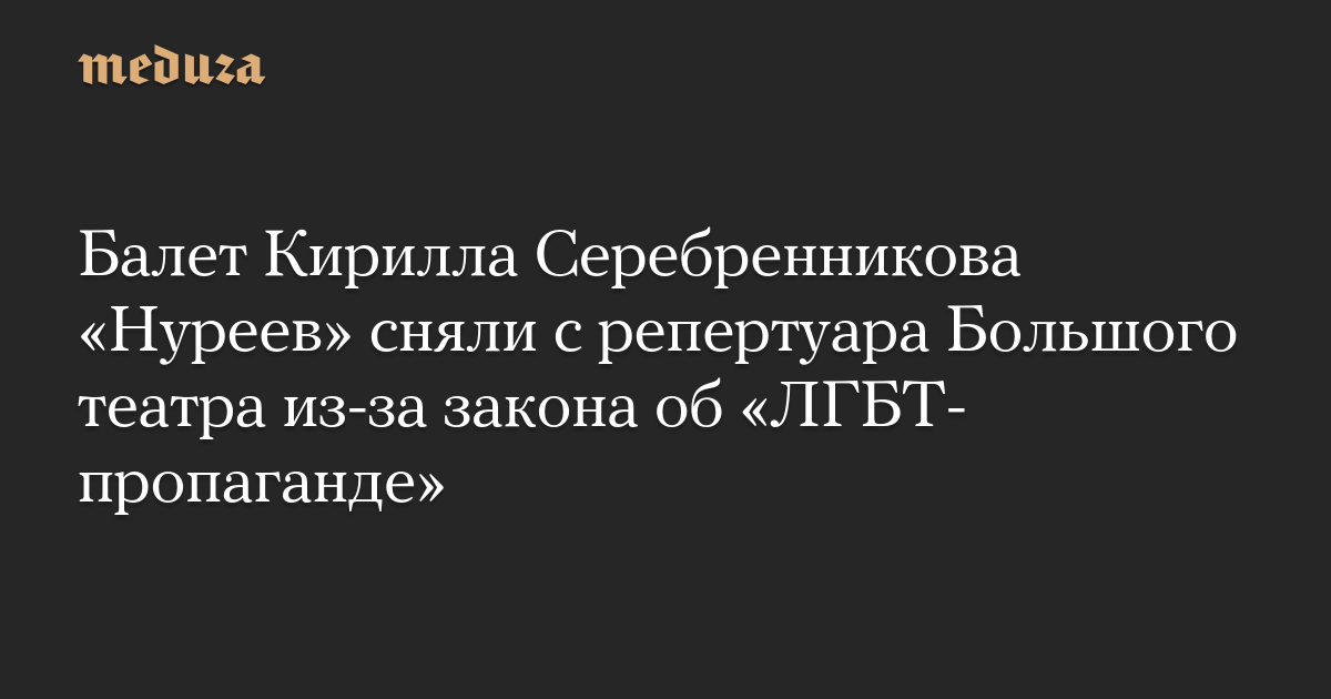 Балет Кирилла Серебренникова «Нуреев» сняли с репертуара Большого театра из-за закона об «ЛГБТ-пропаганде»