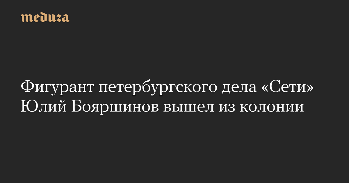 Фигурант петербургского дела «Сети» Юлий Бояршинов вышел на свободу, после того как провел в колонии почти три года, сообщает «Сота».