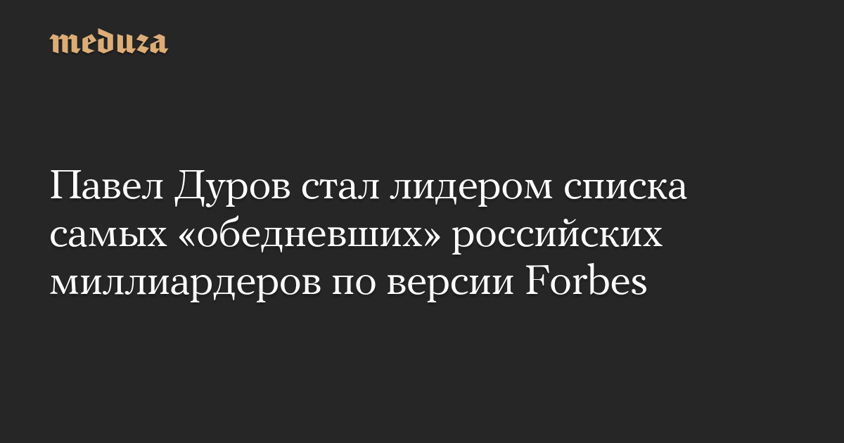 Павел Дуров стал лидером списка самых «обедневших» российских миллиардеров по версии Forbes